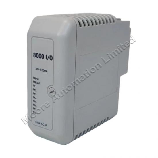 The ABB 8104-AO-IP 8-Channel Analog Output Module is designed for precise control of industrial field devices through analog signals.t is engineered for industrial environments, offering robust operation, easy integration into control systems, and reliable performance over a wide temperature range.