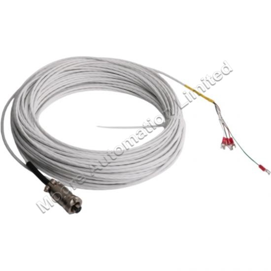 The Bently Nevada 16925-99 Interconnect Cable is a 3-conductor shielded 22 AWG (0.5 mm²) cable. It features a 3-socket plug at one end and terminal lugs at the other, allowing flexible and secure connections between sensors and monitoring equipment. This cable has a total length of 99 feet (30.17 meters), providing ample reach for complex installations while maintaining signal integrity.