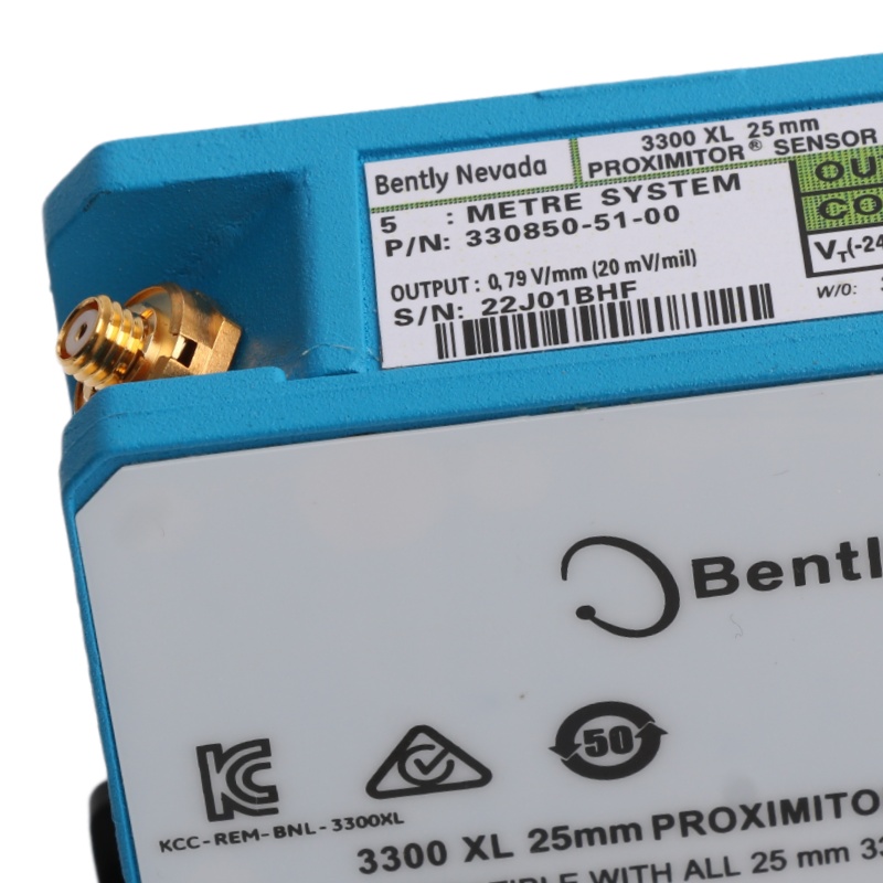 The 330850-51-00 3300 XL 25 mm Proximitor Sensor has the same advanced features as our previous 3300XL Proximitor Sensors.Improved RFI/EMI immunity allows the 3300 XL Proximitor Sensor to achieve European CE mark approvals without any special mounting considerations. This RFI immunity also prevents the transducer system from being adversely affected by nearby high frequency radio signals.