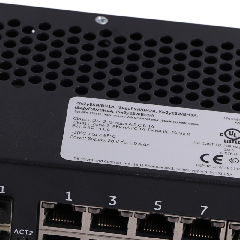 The IS420ESWBH2A device is an unmanaged IONet/Industrial Ethernet switch designed by General Electric to be used in either Mark VleS or Mark Vle Safety Control Systems. A key defining feature of the differences between the five ESwB switches is the number of fiber ports on the switch.
