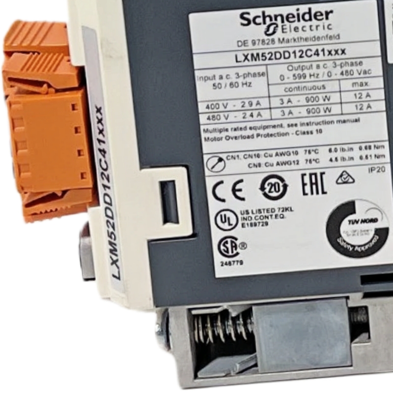 The Schneider LXM52DD12C41000 single drive supports three-phase operation.