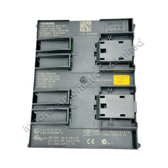 The Siemens 6ES7650-1AA61-2XX0 is an AI8 HART MTA interface module designed for redundant systems, providing reliable 8-channel analog input signal interfacing with HART communication support.
