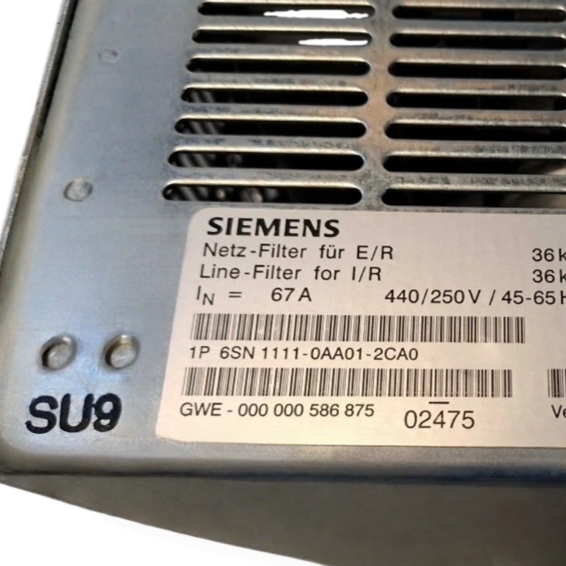 The Siemens 6SN1111-0AA01-2CA0 filter module is part of the SIMODRIVE series and specifically engineered for efficient electrical filtering in various applications. This device boasts a rated power output of 36 kW, handling an input current of 67 A. It operates effectively with voltage ratings of 440/250 VAC.